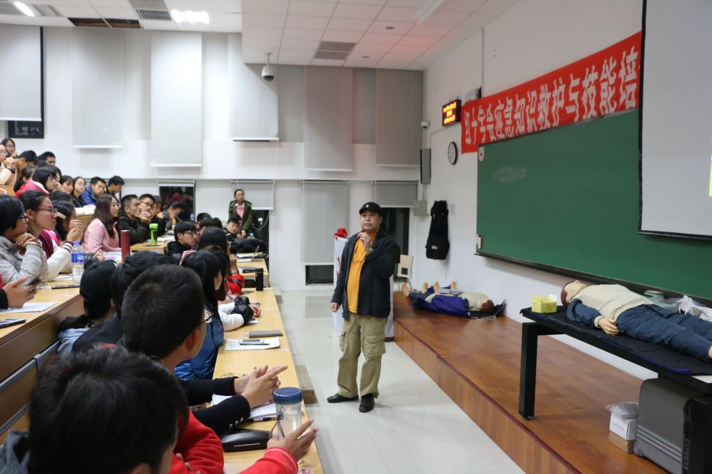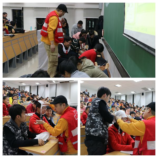 本次培训分为理论培训和实践培训,有老师授课进行理论培训,授课后在老师的指导下学生进行实践操作。主要培训内容为:红十字运动与救护的基本知识;心肺复苏、人工呼吸、止血、包扎、固定、创伤救护等初级应急救护的核心知识与技能;常见急症、意外伤害、突发事件的处置要领。