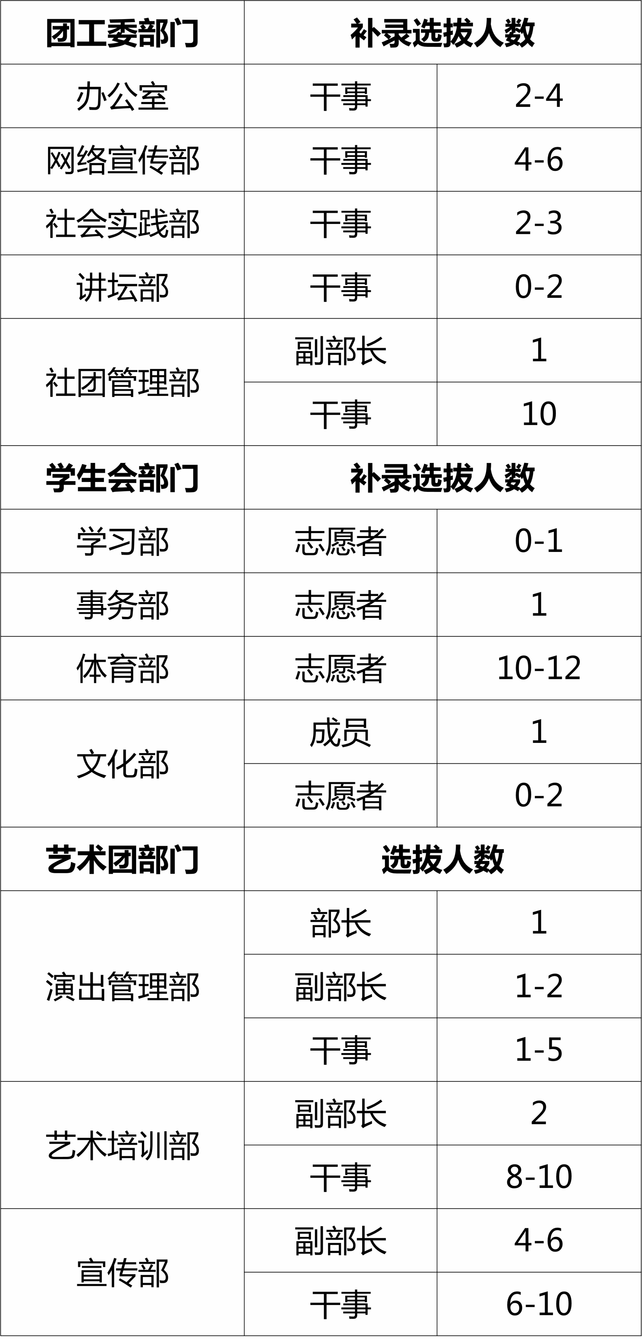 2、欢迎校区各学生组织的各级学生干部踊跃报名,多岗位交流,全方面锻炼;