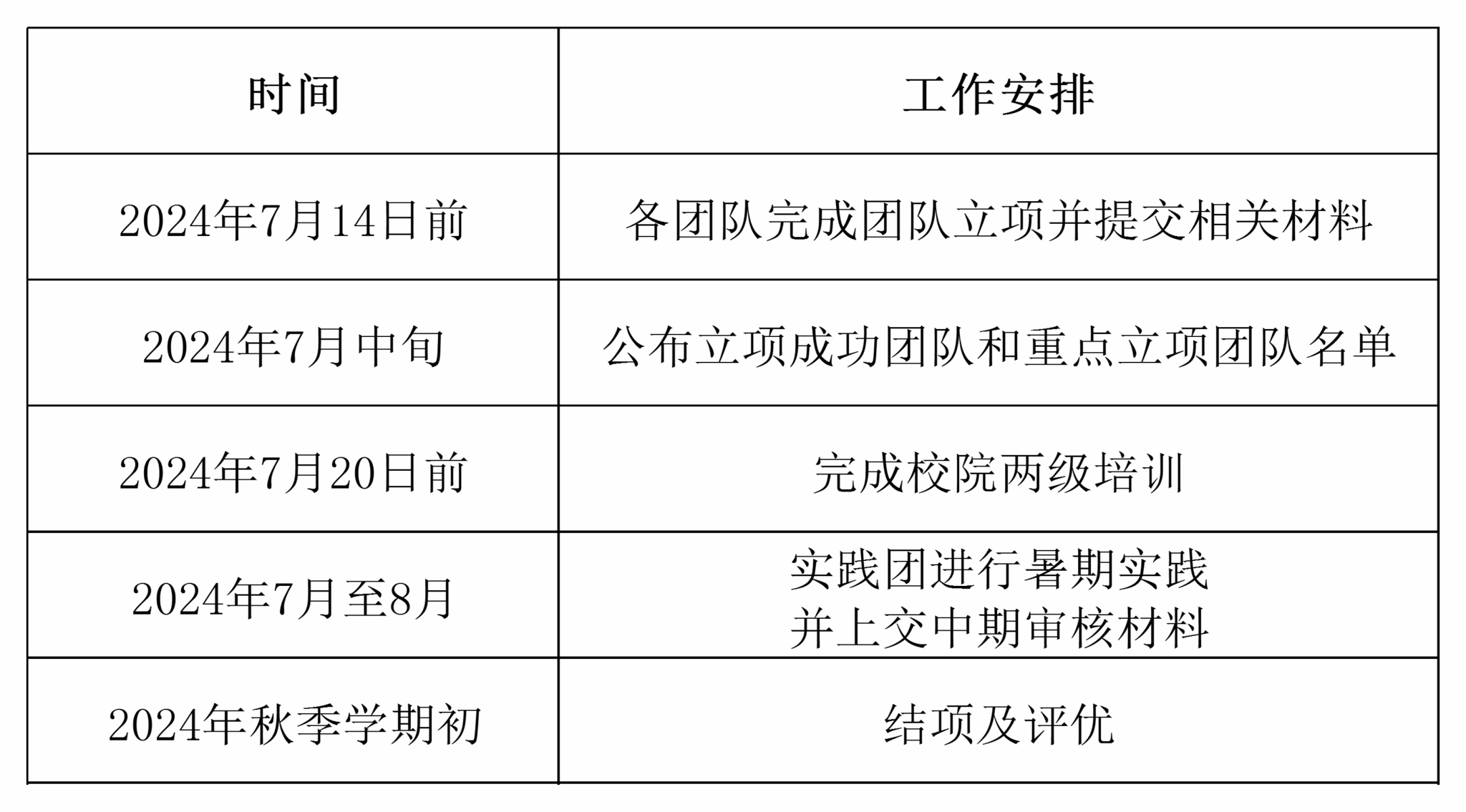 (4)7月14日为立项材料提交时间,请实践团队相应时间段内将电子版立项材料发送至对应邮箱,若所提交立项材料存在问题,校区团工委社会实践部届时会进行邮件回复,请及时关注邮箱,立项通过的实践团名单将于7月中旬公布。