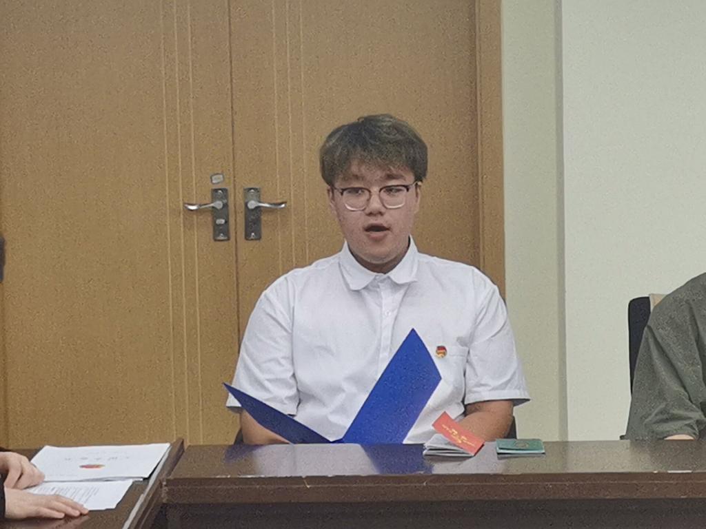 最后,付成龙老师对各位新团员提出了要求与期许。老师先让大家依次介绍了自己入团的原因,并回忆了自己入团入党的初心。付老师表示,入团仪式很重要,但拥有一颗爱党爱国的心更重要,我们要重视从历史中汲取智慧和力量,弘扬党的优良传统和政治优势。我们更要牢记习近平总书记在清华大学考察时所说的话:“广大青年要肩负历史使命,努力成为堪当民族复兴重任的时代新人”,争做一名优秀的团员。