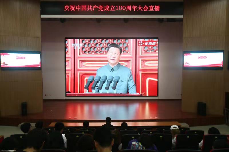 请党放心,强国有我!7月1日上午8时,庆祝中国共产党成立100周年大会在北京天安门广场隆重举行。中共中央总书记、国家主席、中央军委主席习近平发表重要讲话。校区团工委组织青年团员在E03报告厅全程收看了大会现场直播,共庆党的百年华诞。