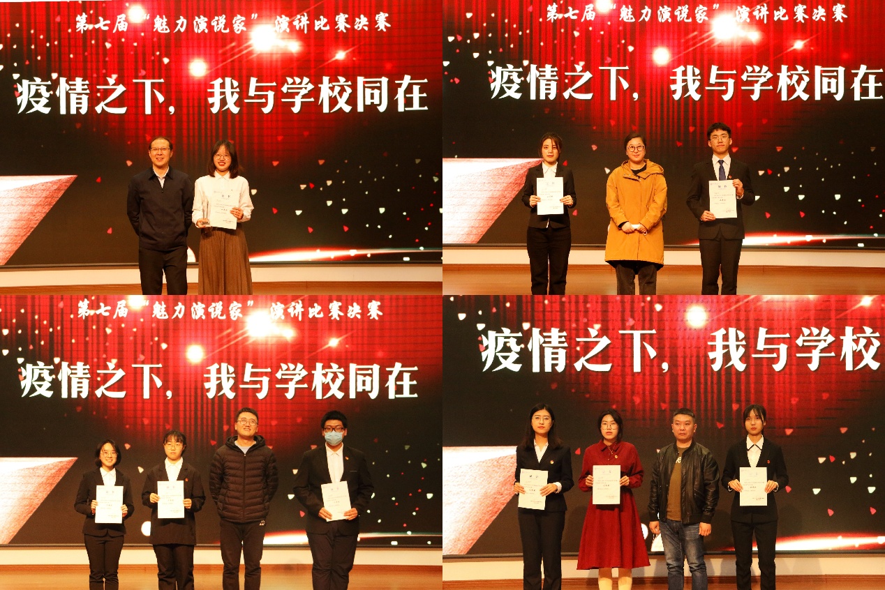 经过评委老师综合评判与屏幕前的观众投票,按照得分高低产生演讲比赛的一、二、三等奖。李昭奕凭借扎实的演讲功底和稳定的发挥,成为了第七届“魅力演说家”的“魅讲之星”。张泽欧、赵月嘉获得二等奖;袁浩翔、石倩、杨玉铉获得三等奖;杨路加、孟永康、李子怡获得优秀奖。