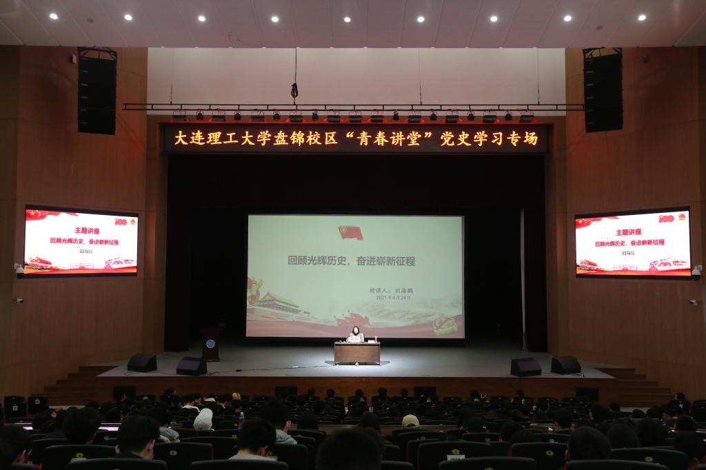 4月19日上午,习近平总书记在清华大学建校110周年前夕来到清华大学考察,与师生代表座谈并发表重要讲话。为深入学习习近平总书记在清华大学考察时的重要讲话精神,开展好“学党史、强信念、跟党走”学习教育,引导校区广大团员青年学史明理、学史增信、学史崇德、学史力行,激励广大青年学生传承弘扬五四精神,担当民族复兴大任,校区团工委于4月24日特邀大连市直机关工委办公室副主任刘海鹏老师做客“青春讲堂”党史学习专场,为校区学子做“回顾光辉历史,奋进崭新征程”主题讲座。校区500余名团员青年聆听讲座。