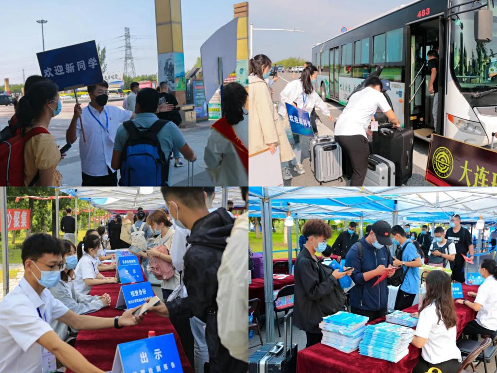 9月8号、9月10号迎新当天,志愿者们前往营口东站、盘锦站和盘锦北站,翘首以盼,从父母手中接过各位新生,全程陪同引导乘坐接站车。根据学校疫情防控要求,大一新生全部从西门进入校园,在志愿者的帮助下依次进行“一测四查”、核酸检测和报到注册。