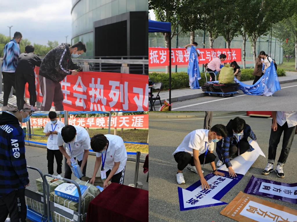 为配合校区做好1400余名新生入学保障工作,帮助新生便捷、舒适、高效地完成报到,校区团学的迎新志愿者们在新生报到前几天就已整装待发,开始他们的迎新工作。从宣传物料设计到新生指南制作,从迎新条幅悬挂到报到场地布置,如:搬桌椅、搭帐篷、贴地标等,校园到处都能看到他们忙碌的身影。
