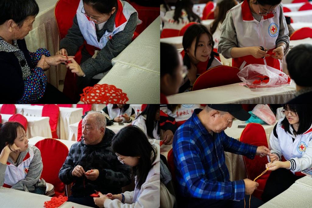 志愿者们围坐在老人们身旁,听着他们讲述自己的青葱岁月,陪伴老人们共进午餐。志愿者们还陪同老人们一起进行手工活动,精心编织的手绳,用心创作的剪纸,时间在欢乐的气氛中悄然流逝。