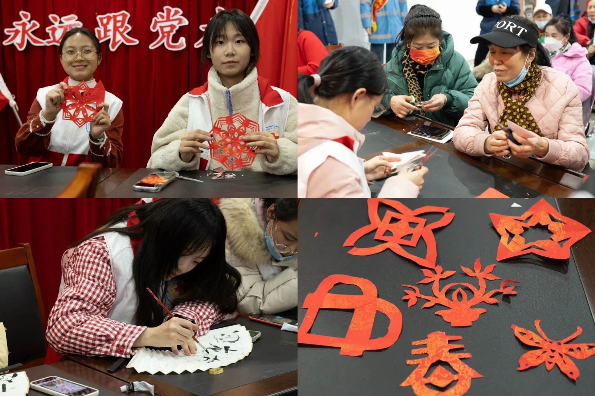 3月6日,志愿者们前往辽河社区,为社区居民们带来别开生面的文化活动体验。志愿者们为当地居民们分享纸扇绘制与装饰的要点,并与他们探讨剪纸工艺,大家一起创作出满意的作品。