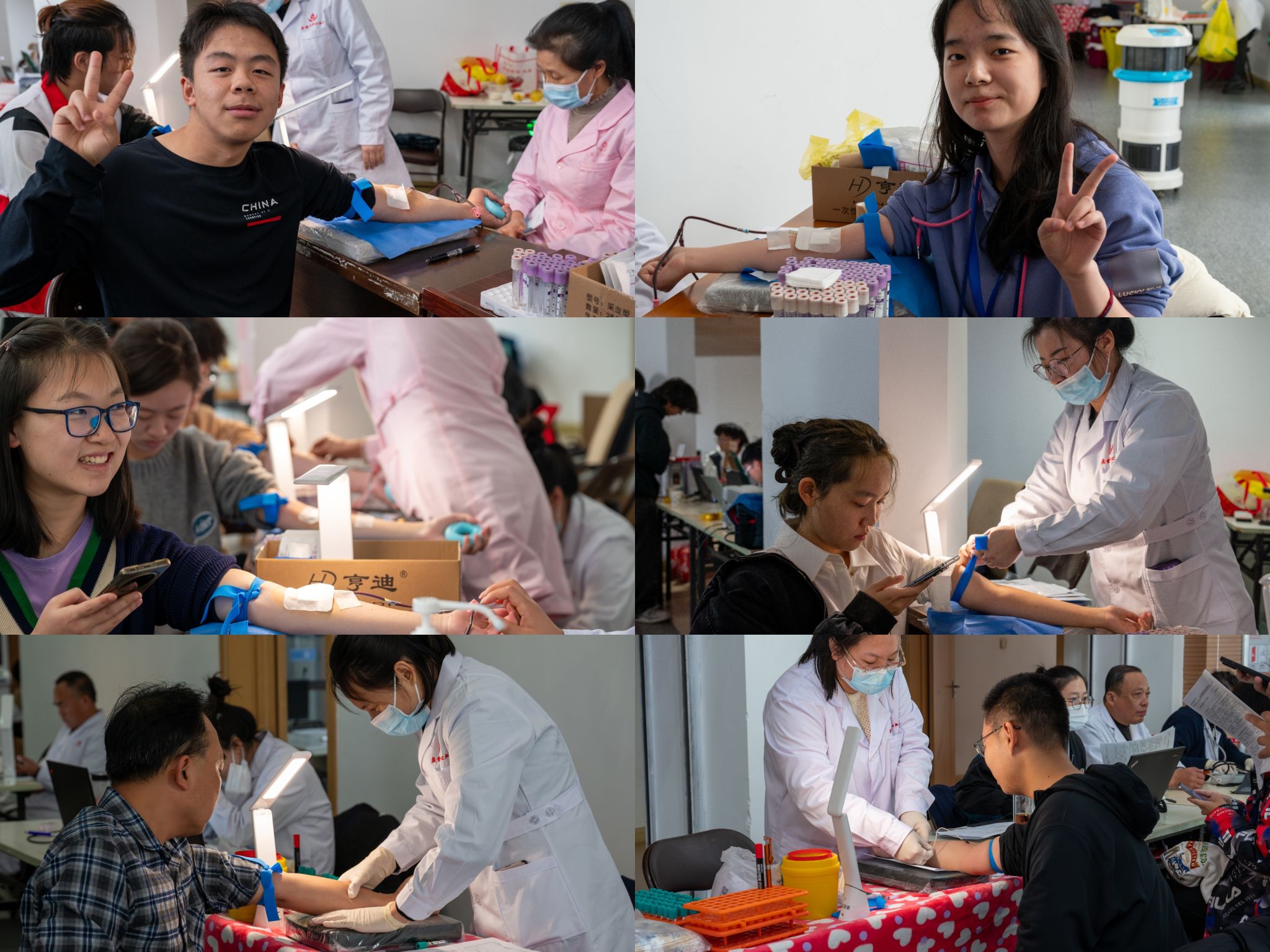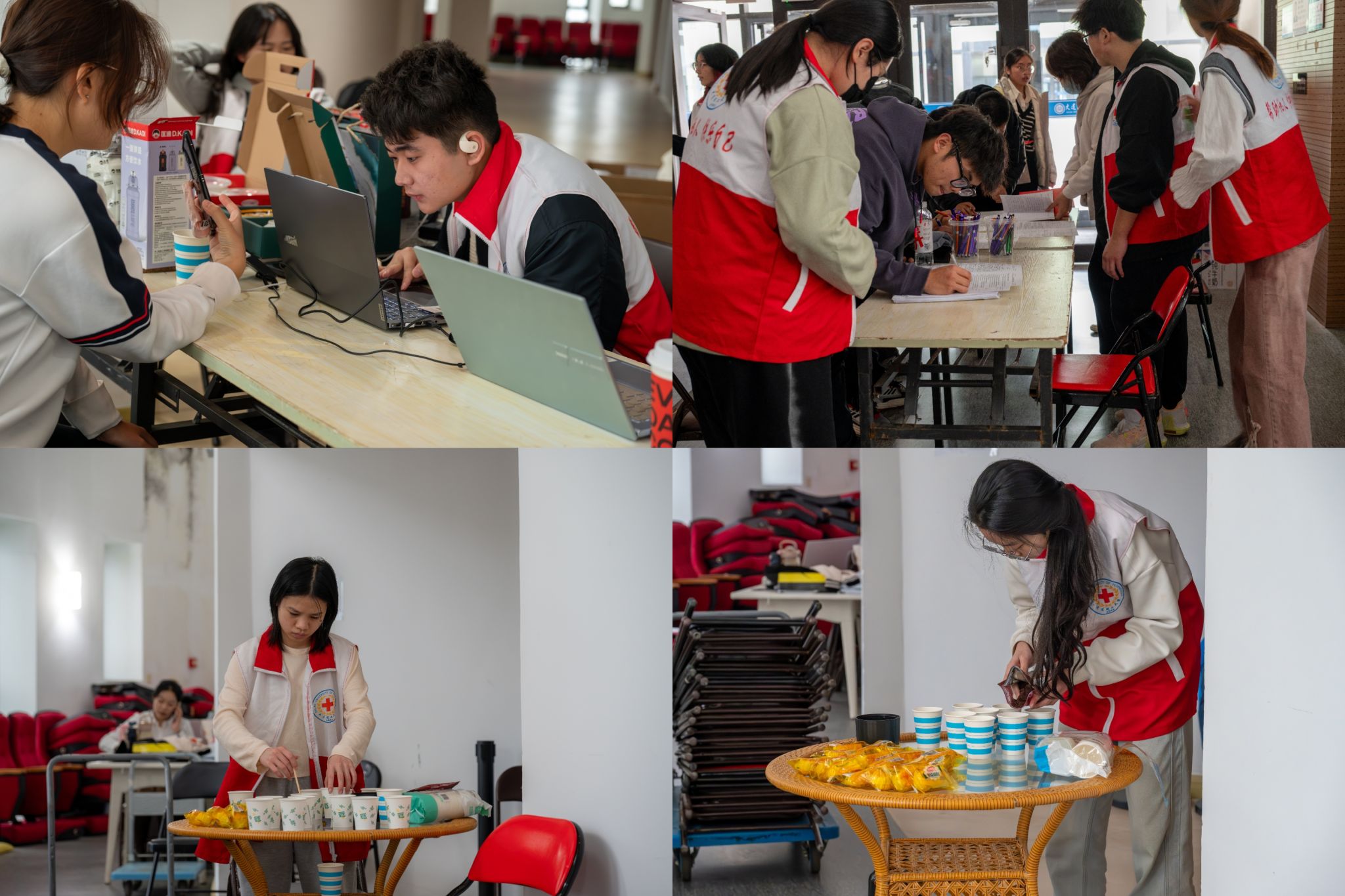 青春靓丽多彩,志愿服务增色。本次活动的圆满成功,离不开每一位志愿者的辛勤付出与共同努力。大厅内,随处可见他们忙碌的身影:耐心地为献血者讲解献血流程,细心地为献血者和医护人员递上温水,还贴心地为献血同学发放小蛋糕用以补充。