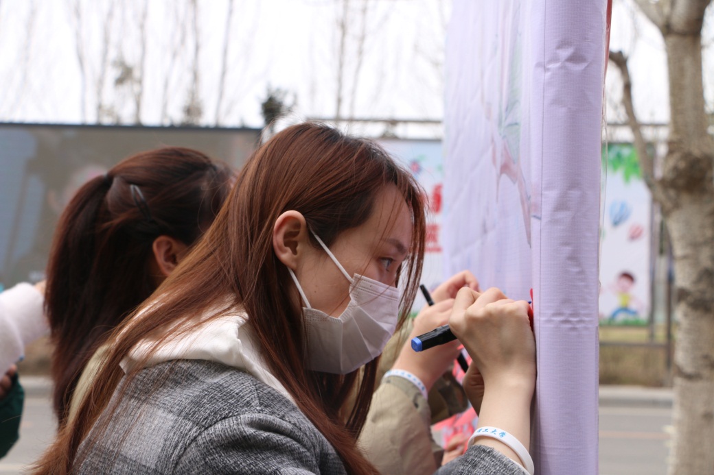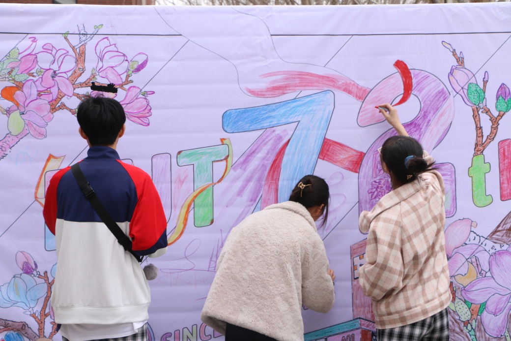 在凌水河畔放下一盏河灯,在明信片上绘制校园风景,在便利贴上写下祝福寄语,在蜡笔之下描摹玉兰盛开……在祝福展示区,同学们用一笔一画,勾勒出理工人的专属浪漫;用斑斓色彩,描绘着对未来的美好期盼;用片片红心,倾诉着爱党爱校的情怀。