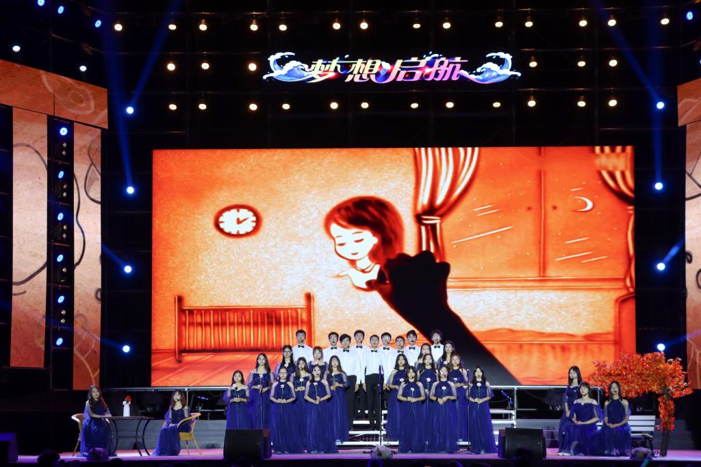 波涛浩瀚,青春澎湃。9月29日晚,大连理工大学盘锦校区2021 “梦想启航”迎新晚会在A01东广场上成功举办,晚会以弘扬传统文化、激荡青春之声、献礼建党百年为主题,以丰富多彩的节目形式展现了大工学子昂扬向上的精神风貌,抒发了青年学子对未来的美好愿景。校区领导、相关职能部门负责人、学院负责人出席并观看晚会,校区2021级本科生、研究生以及师生代表在现场观看了晚会。