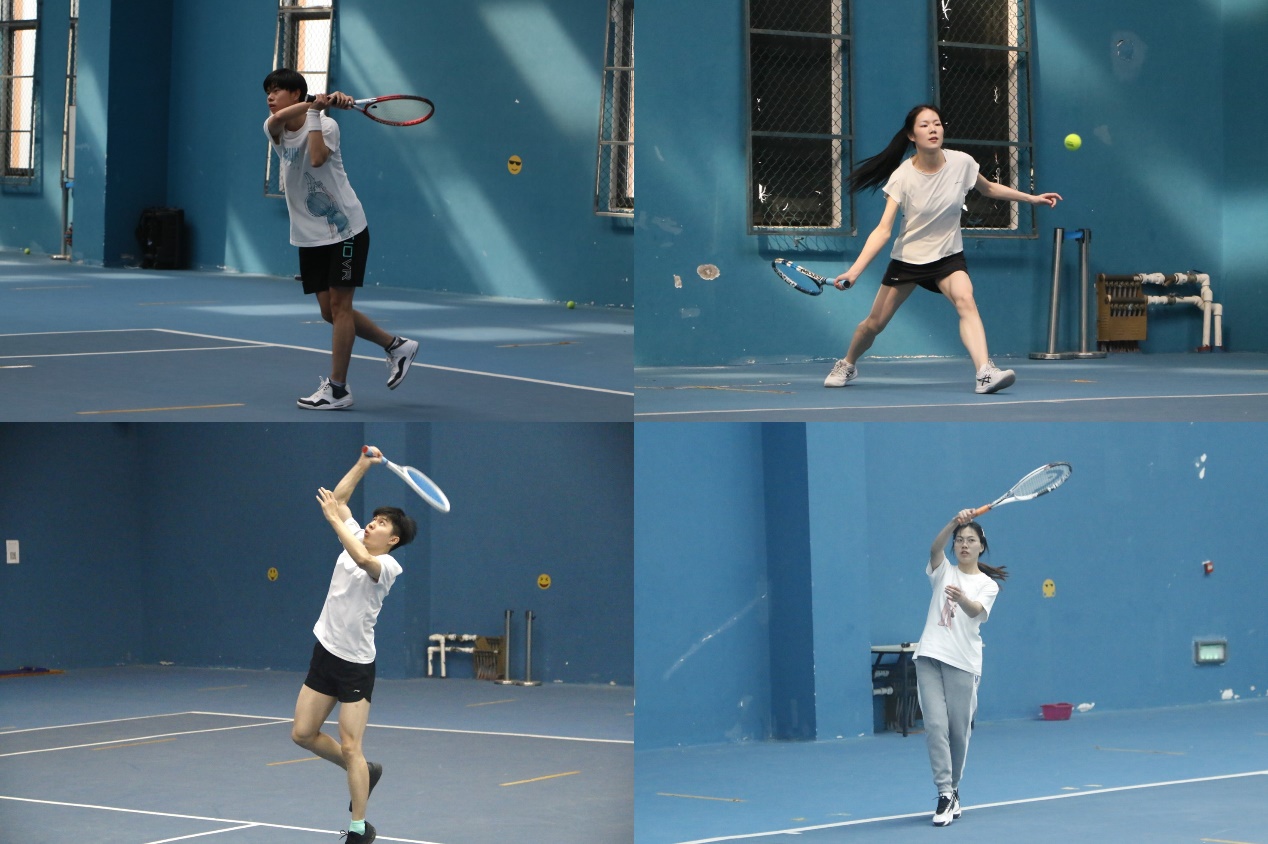 挑战自我,突破极限。网球来来往往,两边竭力奔忙,互不相让,实力相当。选手们大力扣杀、奋力阻挡,击球之声铿锵响亮。经过一场场激烈的对决,分别决出各项目前三名:男子组由谢金钰获得冠军,侯占磊和赵雨昂分列亚军和季军;女子组由叶珊珊获得冠军,张闯和吴宇航分获亚军和季军。