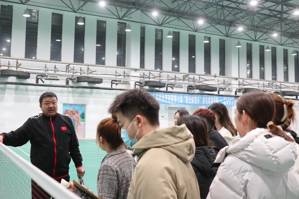 盘锦市羽毛球协会莅临指导"阳光体育杯"比赛现场为校区培训二级裁判员