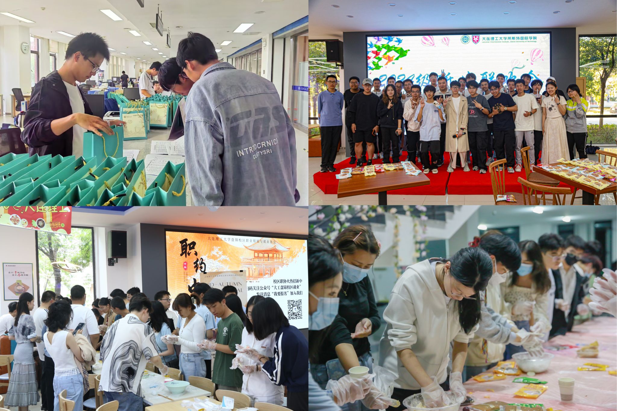 小饼如嚼月,中有酥与怡。校区为同学们发放了学校准备的大工专属月饼礼包,愿学子们都能与学校共享浪漫与美好。校区职业规划与就业协会、化工海洋与生命学院学生会开展了月饼DIY制作,感受动手的乐趣。莱斯特国际学院学生会举办中秋联欢会,同学们在欢声笑语中共享节日的温馨与快乐。商学院学生会的“寻宝玉兔情”开盲盒活动以及公共基础学院学生工作组的“月满中秋 光影盛宴”摄影比赛均吸引了许多同学参加。