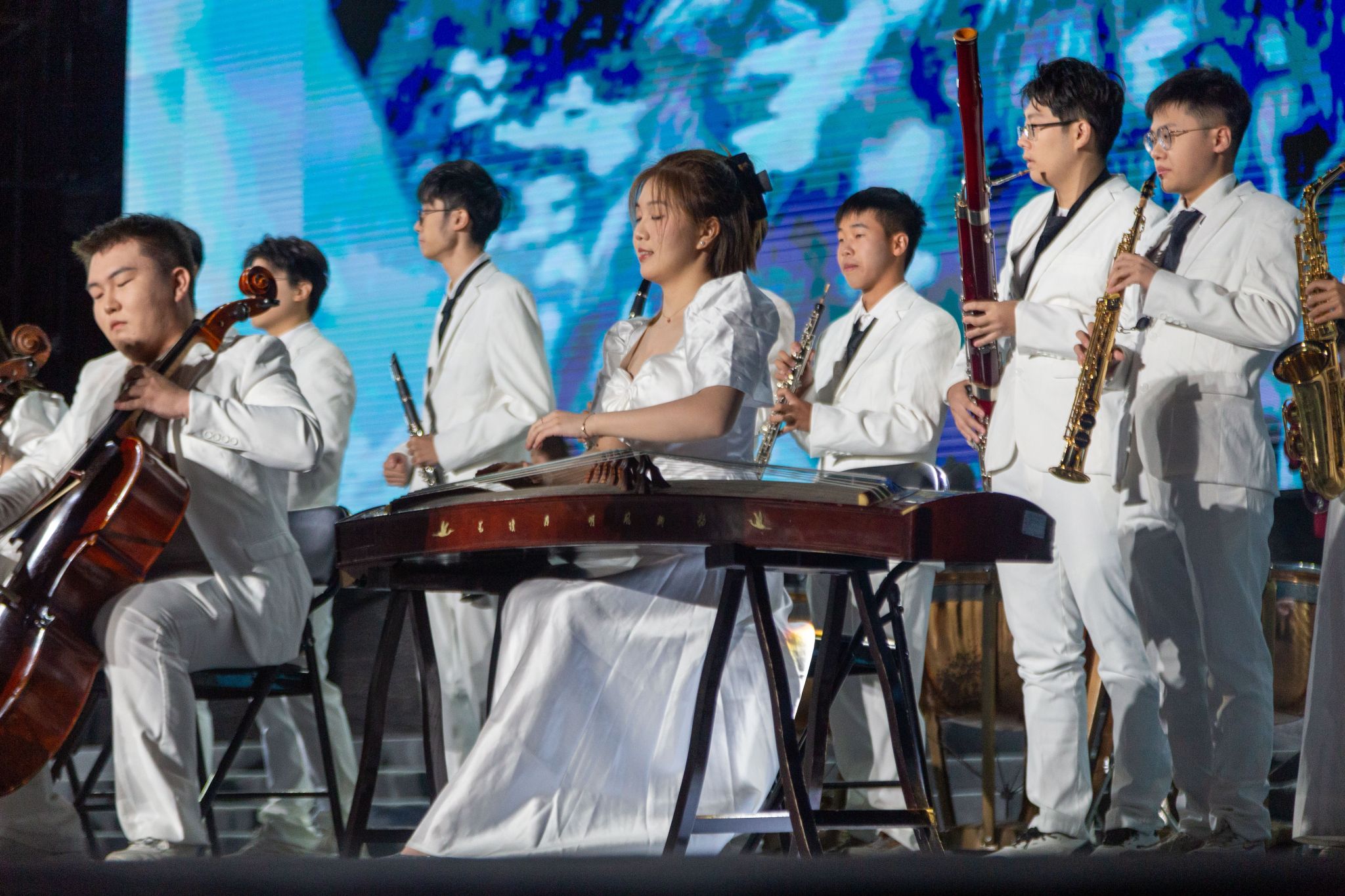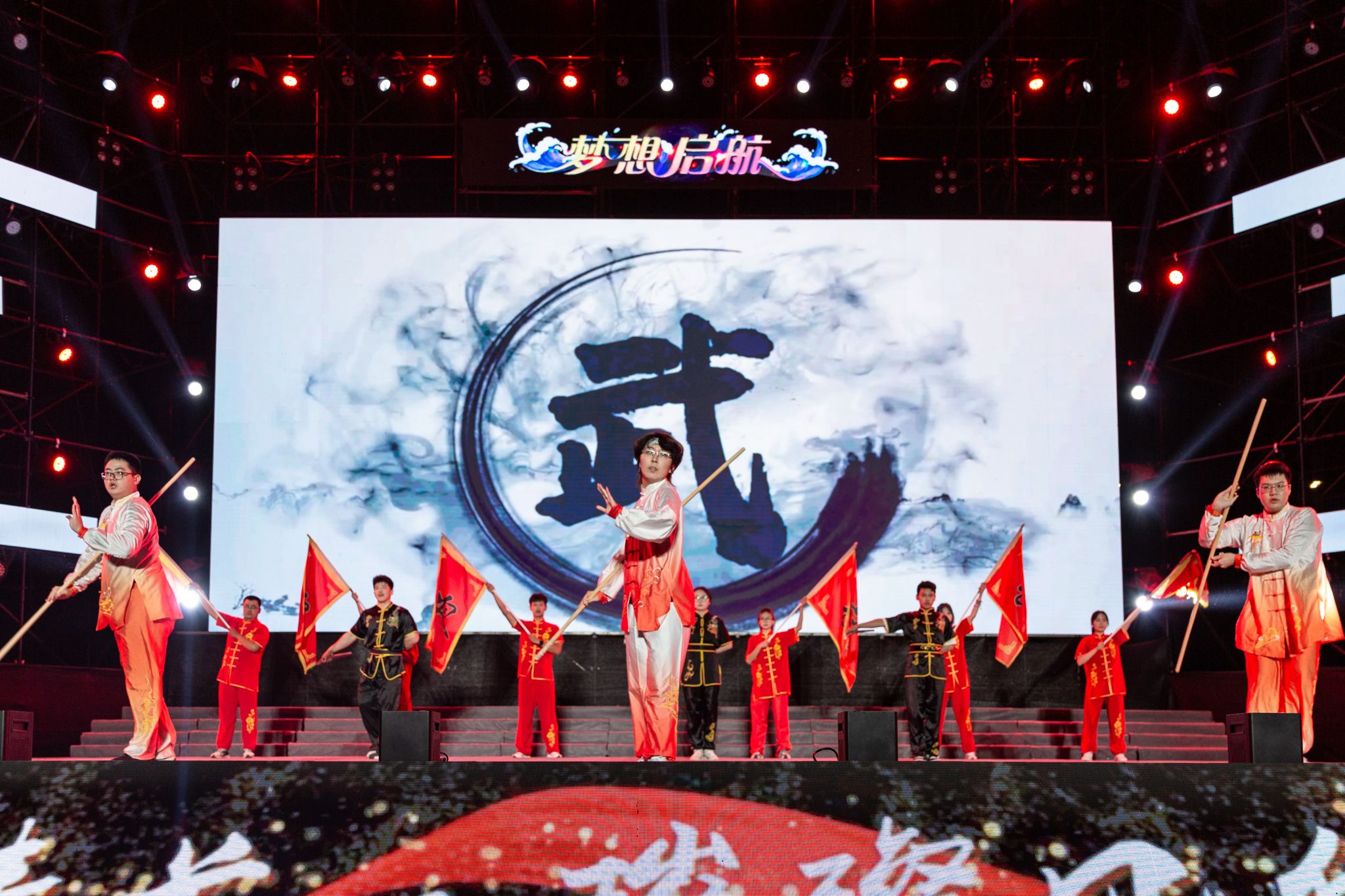 器乐合奏《怀念》将动漫乐曲与中国古典乐器相结合,共同编织出一曲青春的乐章。默剧《默默有闻》满含超越言语的默契与创意,歌舞之美,如诗如画。武术《武海》展示了刀、剑、棍等器械的表演,刚柔并济,武韵飞扬,一招一式间展现出勇敢与智慧的碰撞。舞蹈《COCOON BREAKING》以强烈的节奏感和炫酷的舞姿展现了大学生的活力和激情,让青春在舞台上尽情挥洒。