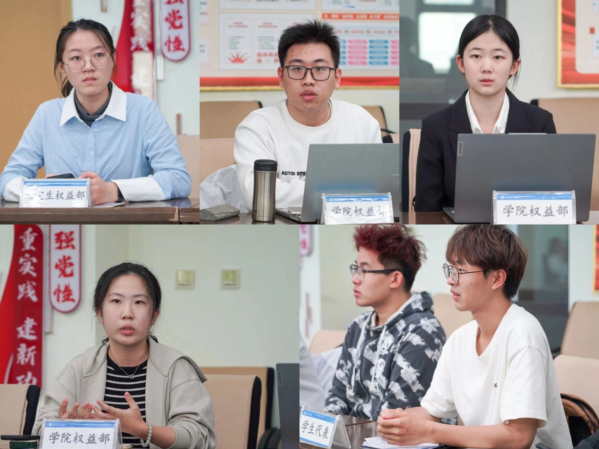 为深入推进"为学生办实事"工作,提升校区学生的自我管理与自我服务意识,切实解决同学们在校学习和生活中遇到的问题。10月11日下午,由校区学生会权益部发起,学生发展与事务工作部、教学与科研工作部、总务部、图书馆以及各学院学生代表共同参与的2024年第四期学情联席会如约而至。各学院权益部代表以及学生代表充分表达诉求并提出建议,各职能部门教师代表针对同学们提出的问题和诉求进行了现场解答。