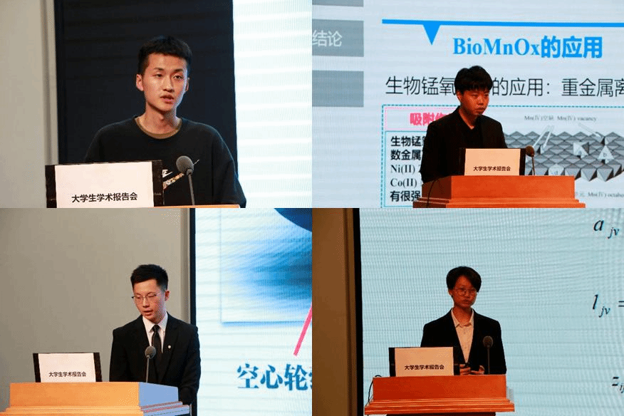 本科生组《振荡水柱波能发电装置冲击式透平样机优化设计和实验》,《pH自调节细菌Lysinibacillus sp. ZGZ-1的锰氧化特性、机理及生物锰氧化物对Pb(II)的吸附性能》和研究生组《钼钴双金属碳化物作为双功能催化剂用于锌空电池》等作品获得评委老师的一致好评。