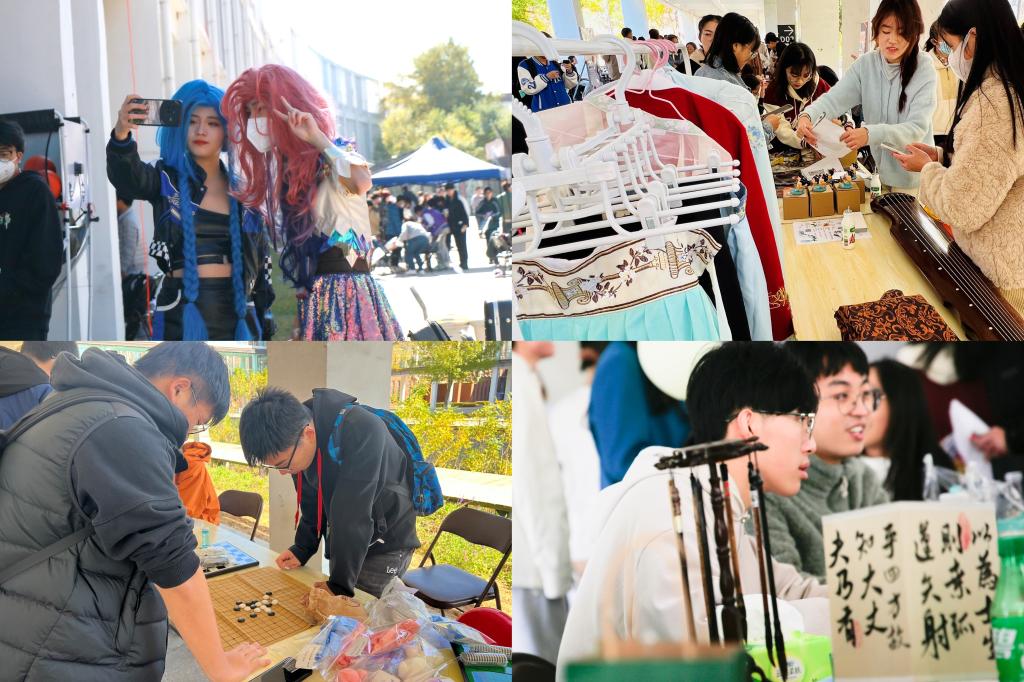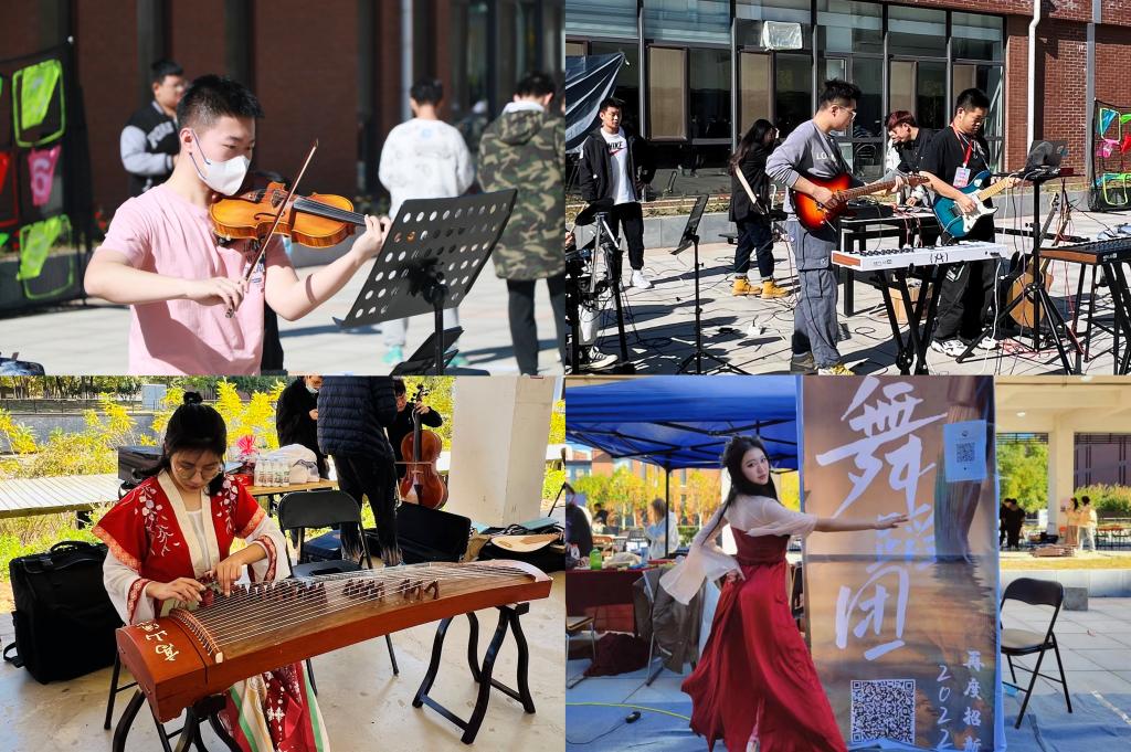 参加“百团大战”的学生社团涵盖文化艺术、体育健身、志愿公益、学术科技四类。悠扬的琴音、悦耳的歌声、动感的鼓点、柔美的舞蹈,在此起彼伏的吆喝中共织成一首动人的青春乐章。有趣的动漫人物、唯美的汉服展示、翰墨飘香的书法、难解难分的对弈,闪烁着同样绚烂的青春光彩。一路走来,一路心动。穿过熙熙攘攘的人群,行经一个个小小摊位,遇见一群群有趣的人,目光所及皆是牵动心弦的精彩,心中所感皆是校区学子对生活的热爱。