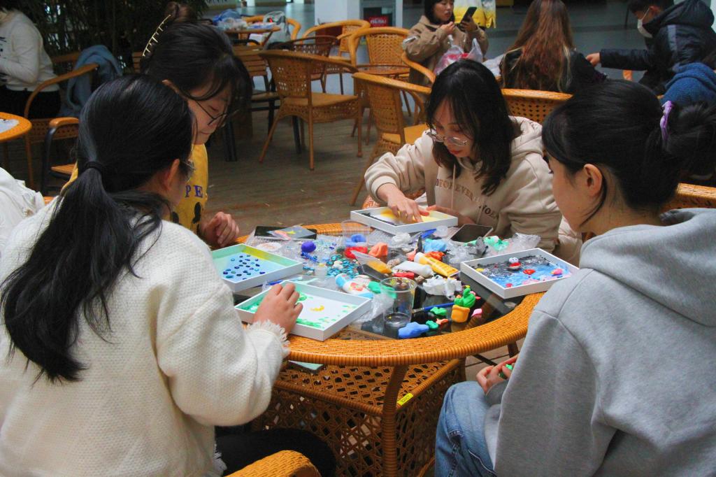 制作过程中,一幕幕温馨和谐的画面浮现:友好地与他人交换不同颜色的奶油胶、热情地与同学们分享自己的奇思妙想与心间愿景。心与心的距离在慢慢靠近,快乐和美好也在光与影中交织传递。在这个温馨的午后,你我共同享受着片刻的安静与闲暇,为温馨的校园生活注入更多的爱与美。