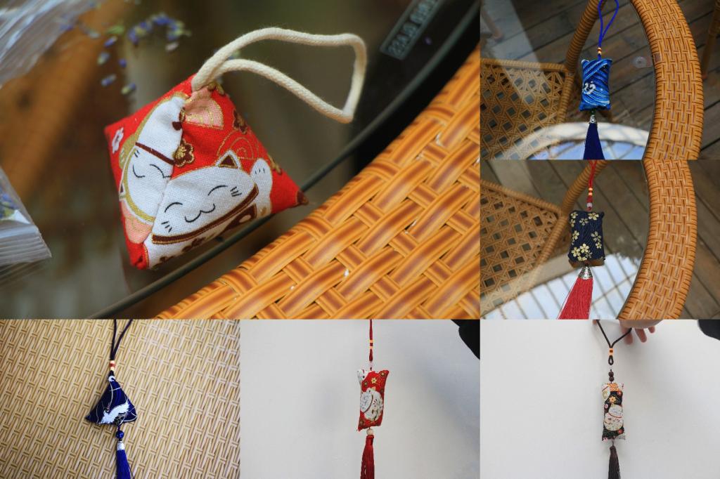 活动现场,参与者尽情挑选着符合内心预期的缝制布料、精美的流苏、挂绳以及珠串等。待挑选完毕,听着讲解员细致入微的讲解,大家便动手做了起来。一针一线灵活的穿梭,一点一滴耐心的缝制,让布料与薰衣草的结合有了生命力。窗外一抹阳光悄然洒进,与各色的流苏交相辉映,光与影在指间波动,那份美好的心愿也在心间流淌。光影斑驳下的桌面,是花式各样的布料,是大小不一的珠子,是飘香的薰衣草香料,是缠绕紧致的绳扣,是各色飘摇的流苏,是大家翻动的手和针线…那小小的四角香囊带着薰衣草的花香在空气中沉浸,飘过鼻尖,也飘进我们心里。