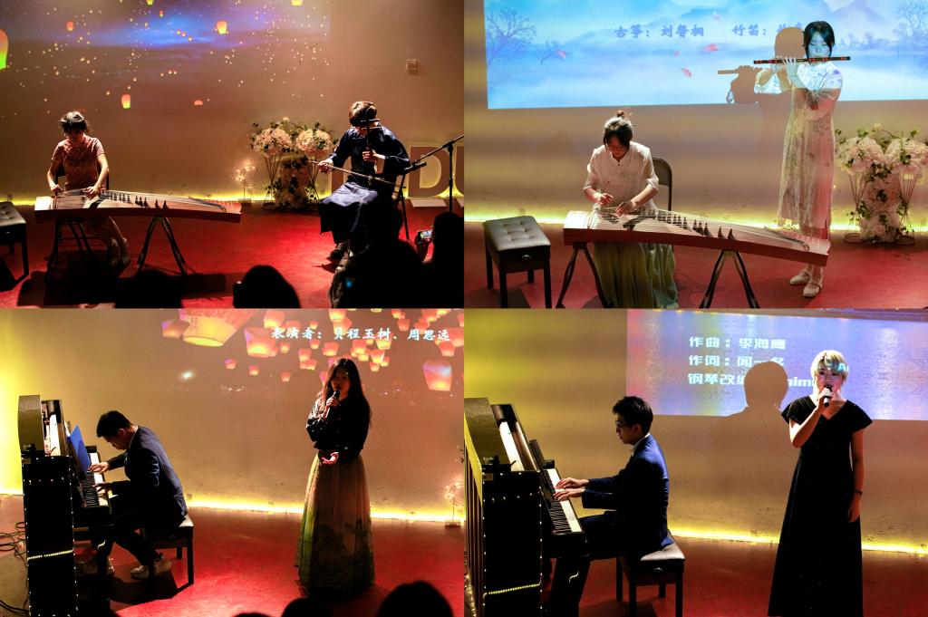 “天青色等烟雨,而我在等你。”“众里寻他千百度,蓦然回首,那人却在,灯火阑珊处。”《兰亭序》《青花瓷》用国乐带来美的享受;《青玉案·元夕》《指纹》用动听的歌声带来美的触动;《七子之歌》唱响了校区学子的中国心。