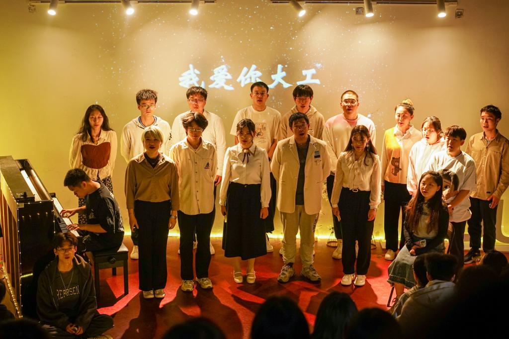 最后,合唱团、星韵工作室演唱的安可曲《我爱你,大工》为本次音乐会划上了圆满的句号。现场同学们手举闪光灯,齐声合唱:“我爱你,大工!能做你的孩子无比光荣,让我们唱首歌把你歌颂……”