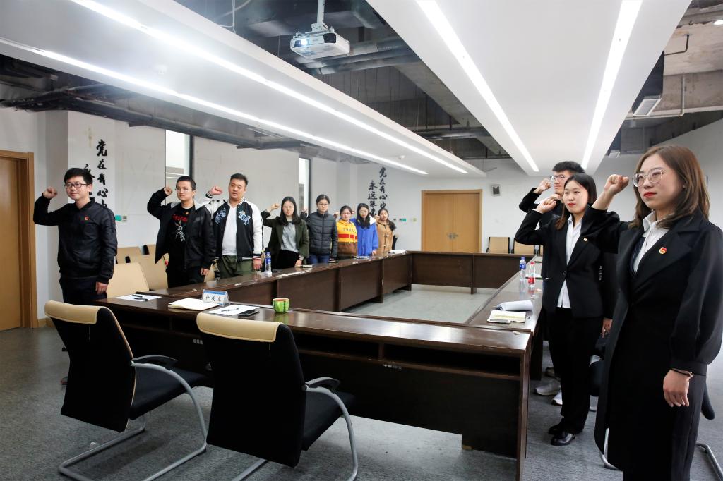 座谈会最后,各位团学代表满怀着激情澎湃的爱国热情对入团誓言进行了重温。大家肃穆地站在鲜艳的团旗前面,举起右手,庄严宣誓,“我自愿加入中国共产主义青年团,坚决拥护中国共产党的领导,遵守团的章程……”。随后,付老师引用习近平总书记的话对座谈会进行总结:“勿忘昨日的苦难辉煌,无愧今日的使命担当,不负明日的伟大梦想。”