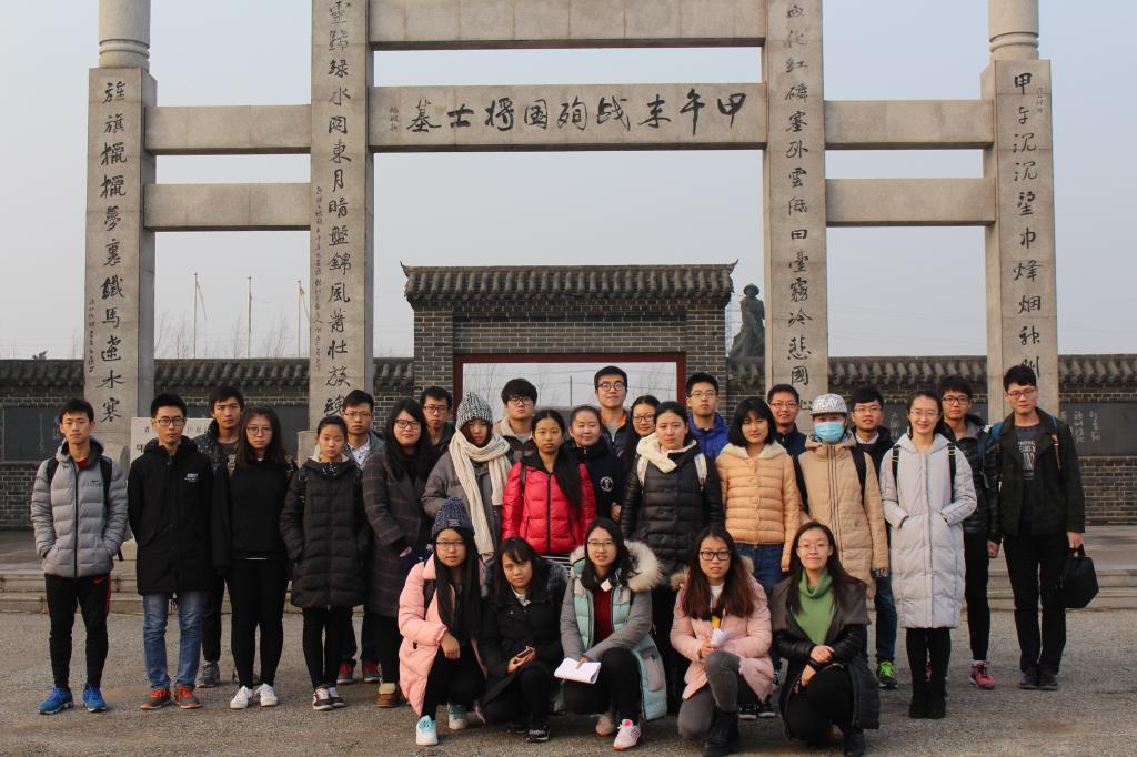 进入纪念园,首先印入眼帘的是烈士墓,青砖埋忠骨,小园留忠魂。墓前矗立着一块石碑,上书“清军之骨墓”。继续向前,是纪念牌坊,它通体由汉白玉所造,上面写着“中日甲午末战殉国将士墓”。牌坊左右有一副纪念长联:“甲午沉沉望中烽烟神州远;旌旗猎猎梦里铁马辽水寒”。看到牌坊的同学们不禁驻足,为阵亡的清军战士惋惜,更是为了那段屈辱的历史而感叹。在牌坊右手边,有一个历史展馆,那里保存着一些战争中遗留下来的物品。那些古老的物件,没有被战火损毁,静静向来到这里的同学们诉说着过去那一段惨烈的故事。讲解员告诉同学们,田庄台本是地处辽河下游的水路要津,一度商贾云集、帆樯林立,商号作坊鳞次栉比,是东北地区的辽水古镇。然而,战争毁掉了这一切,使田庄台由原本的繁华变成了破败不堪。理论学习班的同学们认真聆听,用心参观,体会那对抗侵略的民族精神,那是中华民族能屹立风雨中的坚实支柱。