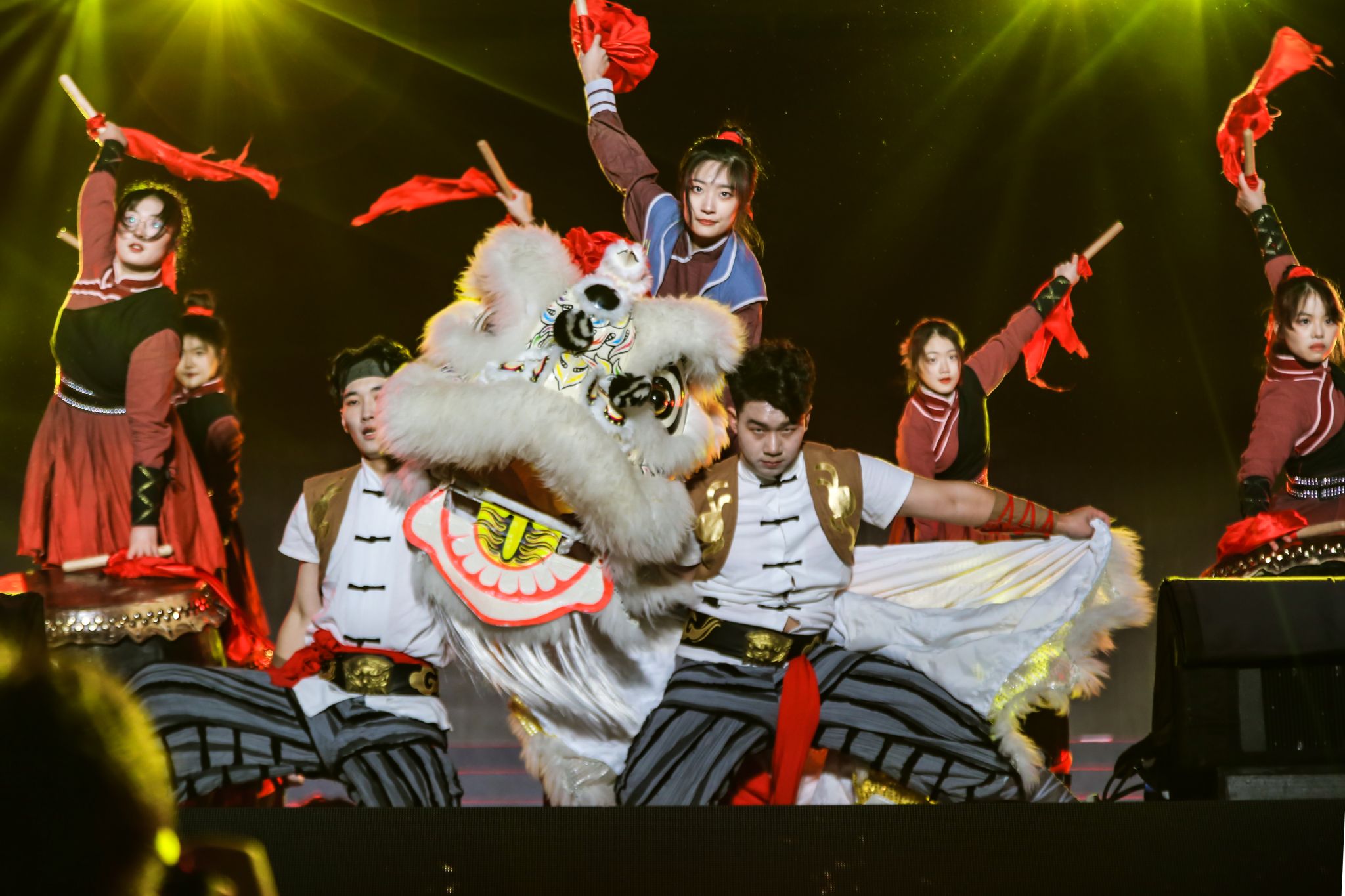 走过苦难辉煌的过去,走在日新月异的现在,走向光明宏大的未来,一曲串烧《如愿》唱出青年学子对革命先辈们的敬意和对伟大祖国的祝愿。醒狮醒国魂,击鼓振精神,中华当崛起,日月共乾坤,舞蹈《醒狮》讲述了华夏儿女的家国大义,诠释了中华民族精神的凝聚与追求。新生带来的朗诵《青春告白祖国》展现了新时代大工青年的强国梦想与使命担当;伴随《我爱你中国》的动人歌声,现场2022级新生们纷纷挥舞小国旗,共同唱出对祖国深切的热爱,现场的爱国气氛达到了高潮。