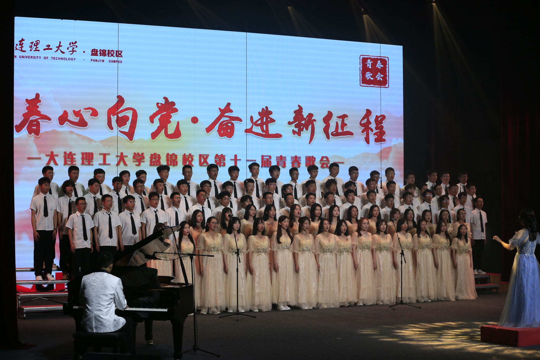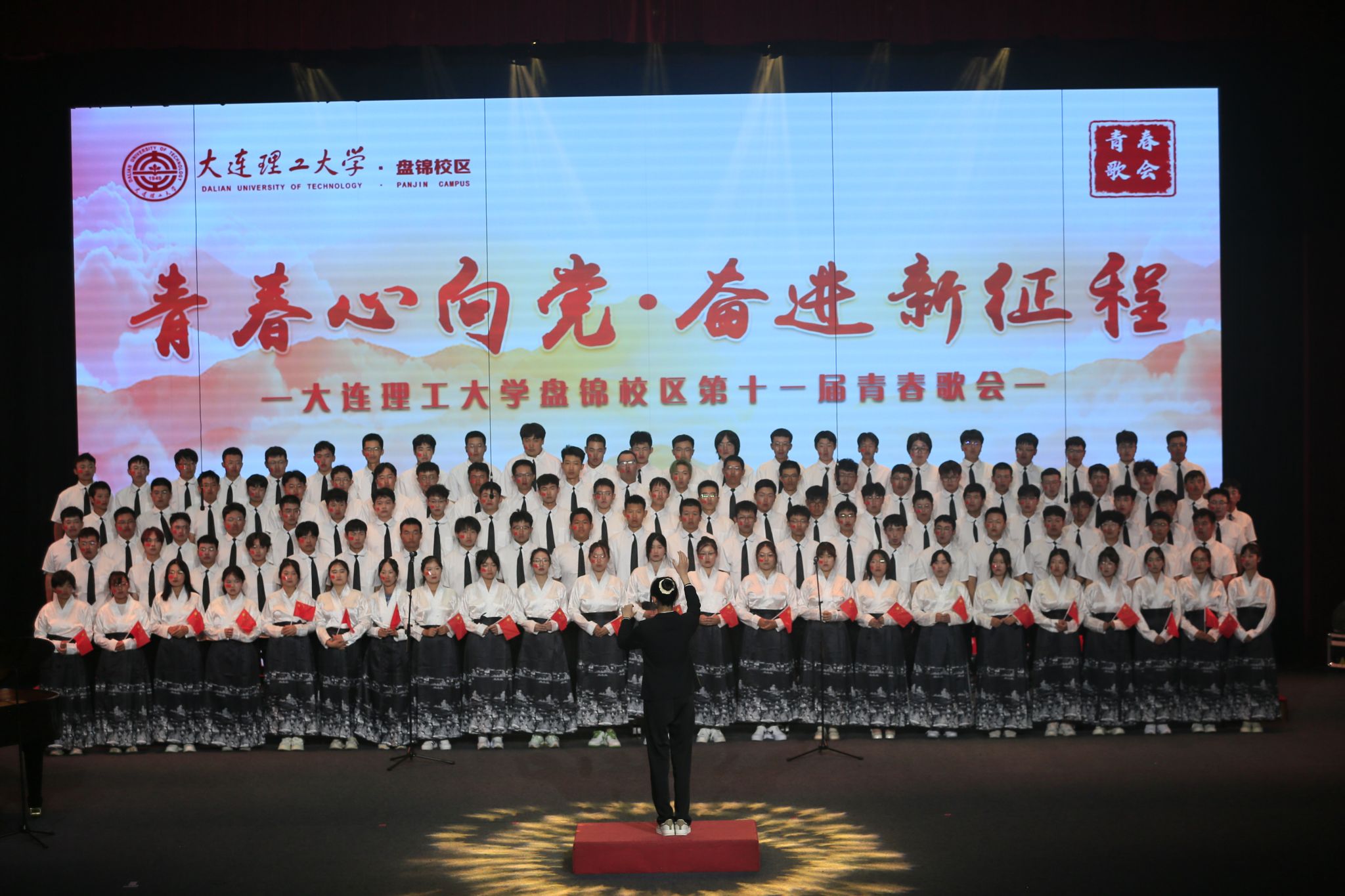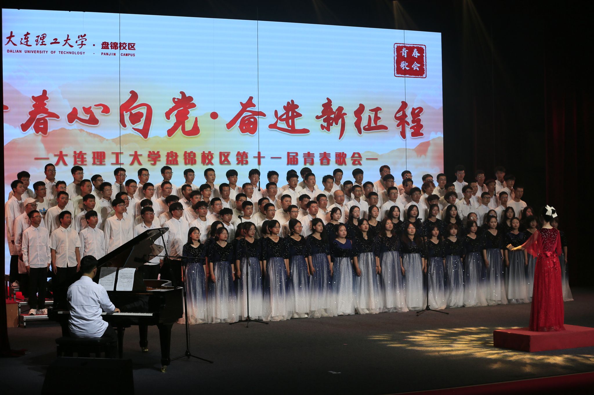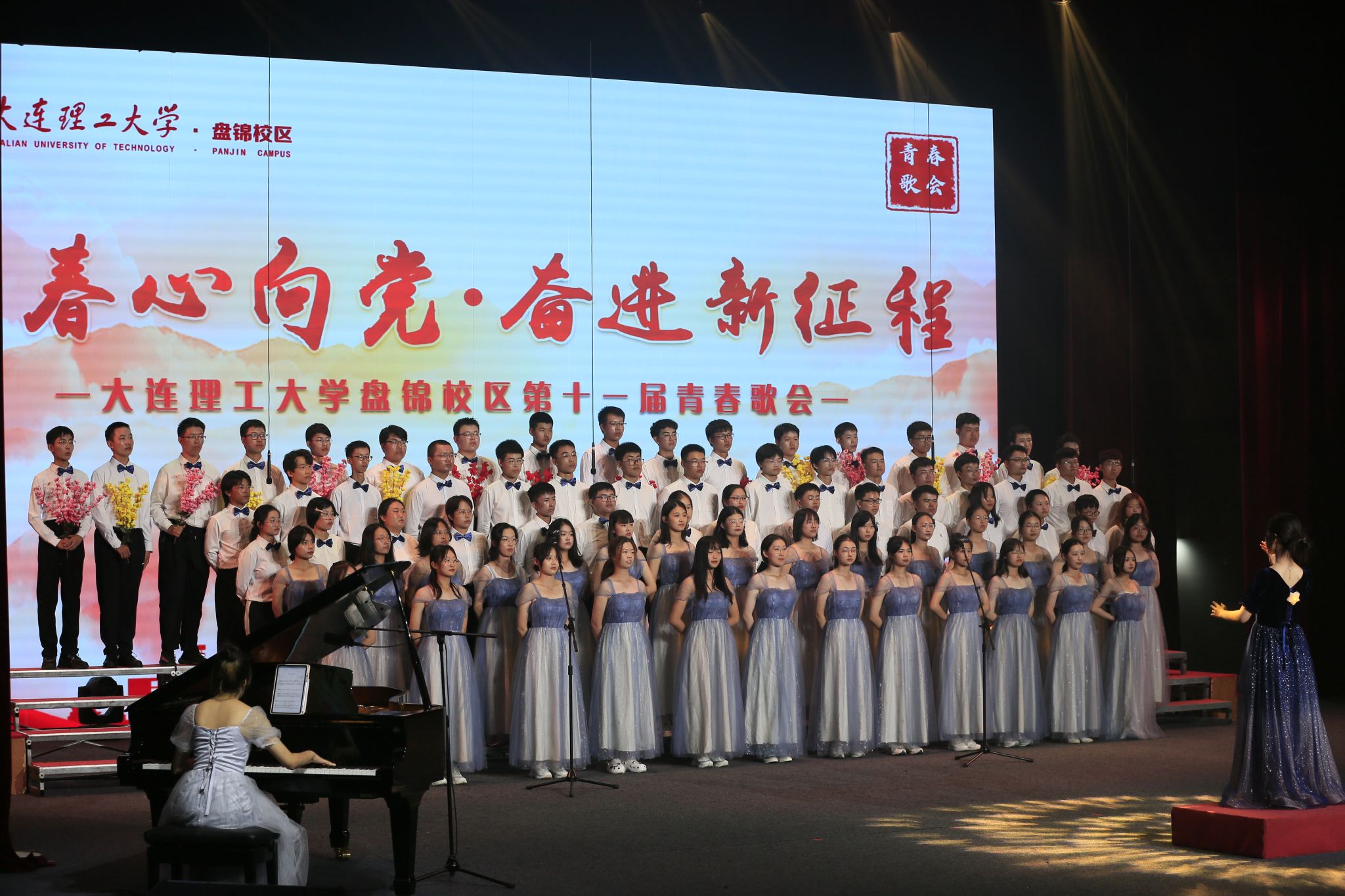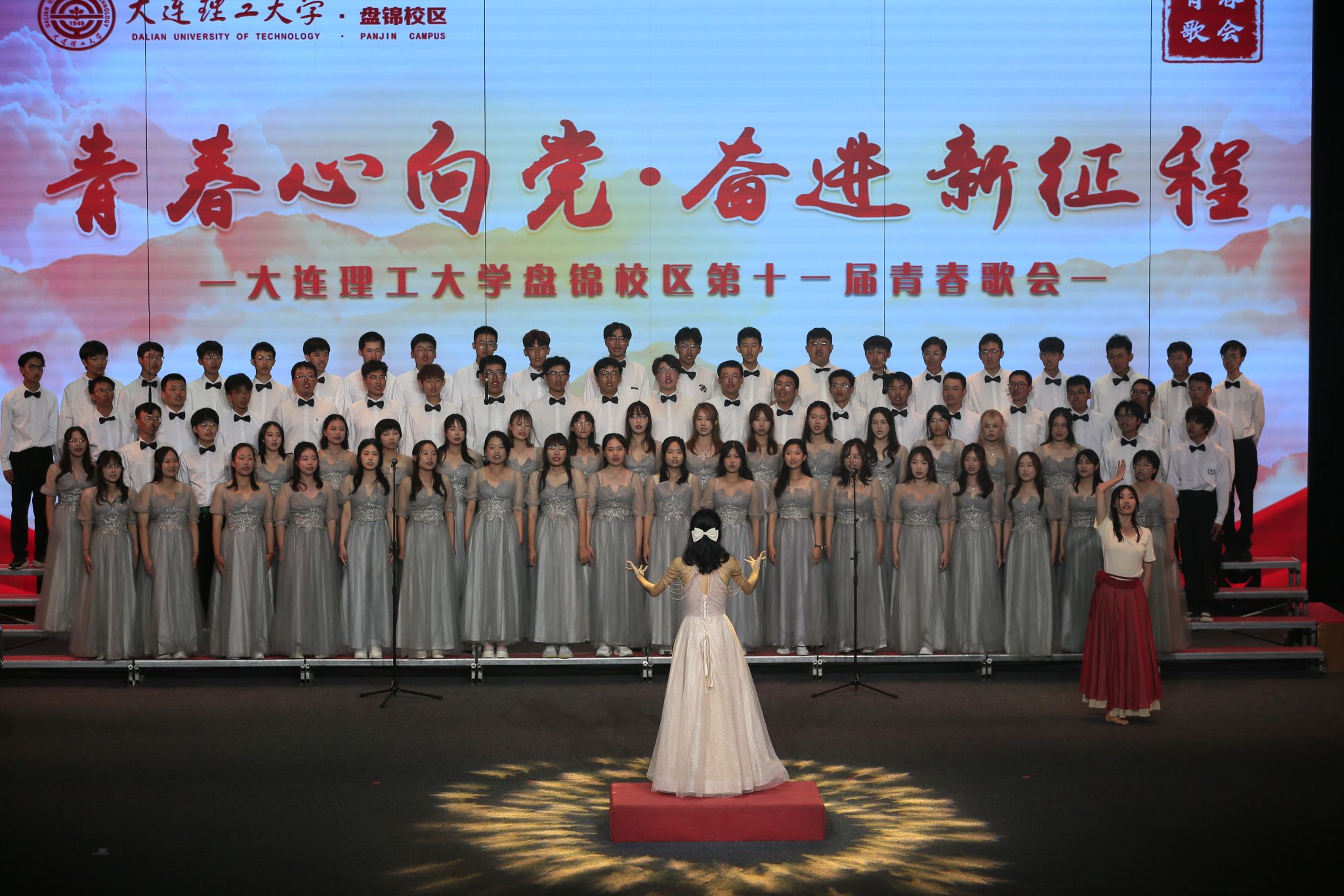 殷殷之情俱系华夏,寸寸丹心皆为家国。为营造积极向上的校园文化氛围,激发2023级新生爱党爱国情怀,团结和引导校区青年以筑牢理想信念为目标,用实际行动践行“请党放心,强国有我”的青春誓言,大连理工大学盘锦校区于2023年9月14日晚,由校区团工委主办、校区学生会文化部承办的“青春心向党 奋进新征程”第十一届青春歌会在E03大礼堂圆满落幕。活动邀请国家二级作曲家、指挥家,盘锦音乐家协会名誉主席——冯晓地老师,大连理工大学体育与健康学院教授、体育舞蹈全国A一级评审、校区教工合唱比赛指导教师——张晓萍老师担任评委。