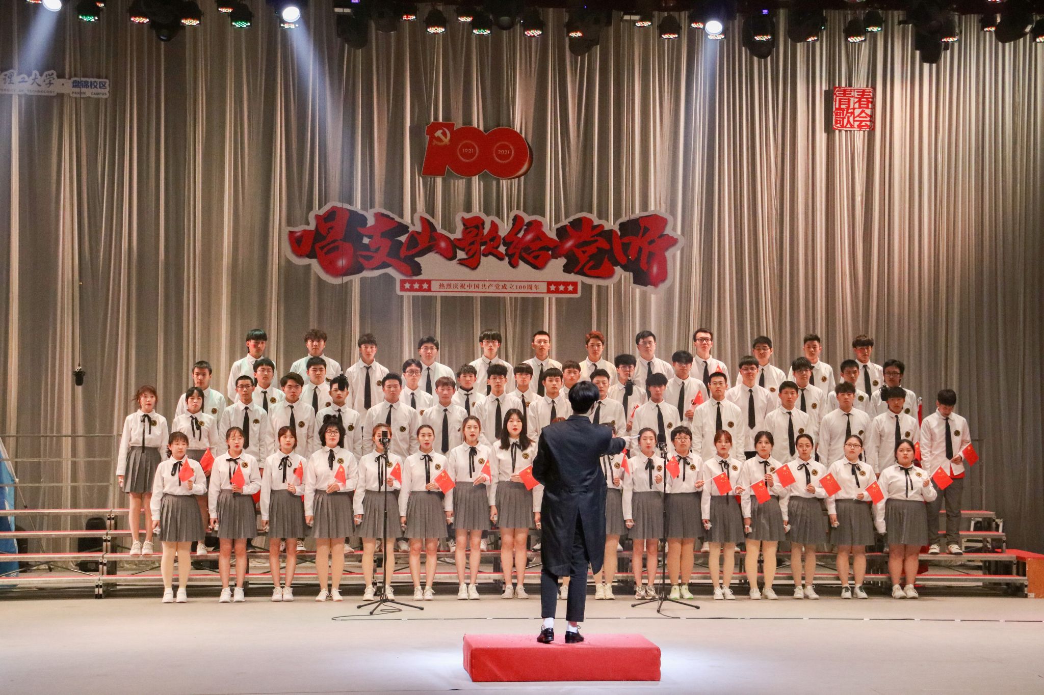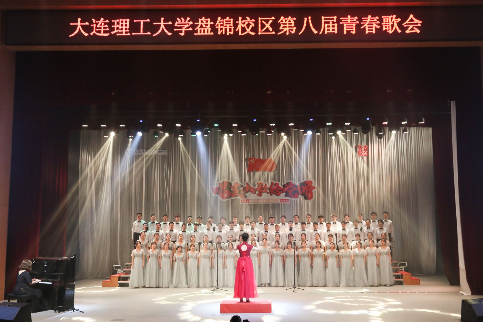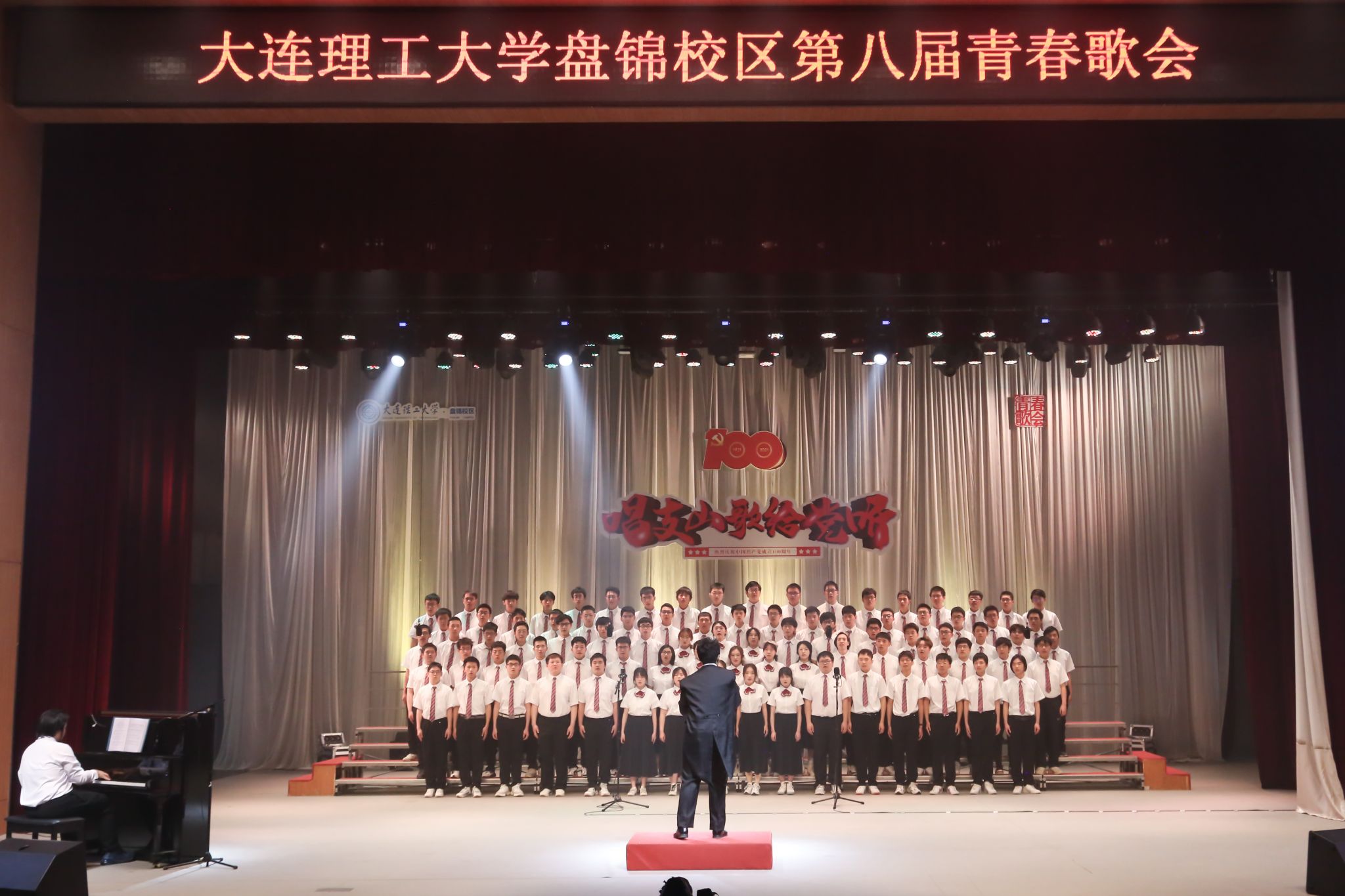为深入学习贯彻习近平总书记在党史学习教育动员大会上的重要讲话精神,开展好“学党史、强信念、跟党走”学习教育,以音乐回望百年党史,以歌声共忆往昔峥嵘,由校区团工委主办、校区学生会文化部承办的“唱支山歌给党听”第八届青春歌会于2021年4月18日晚在E03大礼堂成功举办,校区学子同唱时代高歌,共抒爱党之情,献礼建党百年。本次歌会特邀盘锦市音乐家协会副秘书长、盘锦市声乐家学会副会长、盘锦市艺术团声乐队队长史亮,盘锦市青少年宫声乐教师、盘锦市音乐家协会常务理事、盘锦市合唱学会秘书长孔德力担任专业评委。